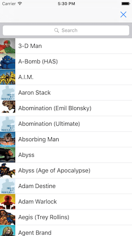 As an example, let’s implement a searchable list displayed in a table view with a search bar.
